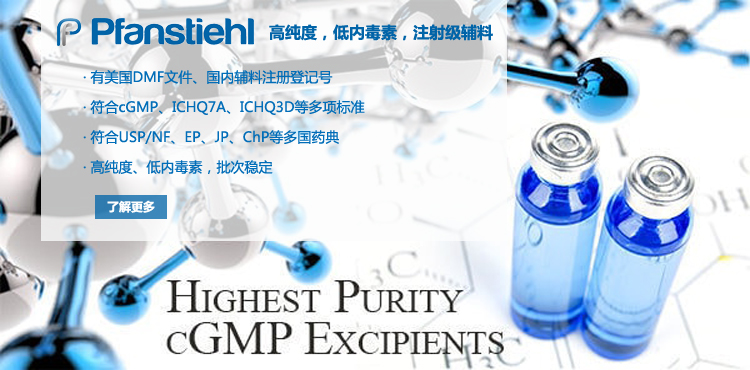 “熱烈祝賀Pfanstiehl的注射級甘氨酸Glycine(G-140)喜獲CDE登記號F20250000403, 這是Pfanstiehl產品獲得的第18個CDE登記號!”甘氨酸在醫藥輔料制劑中應用廣泛,, 可作為緩沖劑,增溶劑,穩定劑等,具有諸多優勢。Pfanstiehl秉承一貫高品質理念,為滿足全球生物制藥行業對于高品質甘氨酸的需求,隆重推出的注射級甘氨酸Glycine (G-140), 具有超高純度,超低內毒素,超低金屬殘留的特點,單獨檢測29種金屬離子,并且新增DNA,RNA,DNA酶,RNA酶和脂肪酶,亞硝酸鹽等多項質量指標的檢測,符合多國藥典規定(USP, EP, BP, JPE, ChP),可用于生物治療性藥物和疫苗的生產。產品信息:· 產品名稱:Glycine, High Purity, Low Endotoxin, Low Metals, USP, EP, BP, JPE, ChP (G-140)· 中文名稱:甘氨酸· 分子式:C2H5NO2· 分子量:75.07 g / mol· CAS號:56-40-6· 產品貨號:G-140產品特點: · 超高純度,超低內毒素,超低微生物含量,超低金屬雜質殘留· 質量指標新增DNA,RNA,DNA酶,RNA酶,脂肪酶和亞硝酸鹽檢測· 符合多國藥典:USP, EP, BP, JPE, ChP· 符合ICH Q3D標準· 符合GMP標準· 已獲DMF和CDE登記號 產品應用:· 緩沖劑· 穩定劑· 增溶劑如果您對Pfanstiehl注射級別Glycine G-140感興趣,歡迎聯系Pfanstiehl 中國區代理商北京西美杰科技有限公司獲得如下詳細的產品概況說明文件和測試樣品。Pfanstiehl Inc.最新產品系列如下,歡迎聯系北京西美杰科技有限公司獲取100g裝免費樣品。北京西美杰科技有限公司為Pfanstiehl中國代理,為客戶提供完善的技術支持與售后服務。歡迎撥打西美杰客服電話400-050-4006或者登陸網站www_xmjsci_com.yydjd.com.cn了解更多信息。 更多>